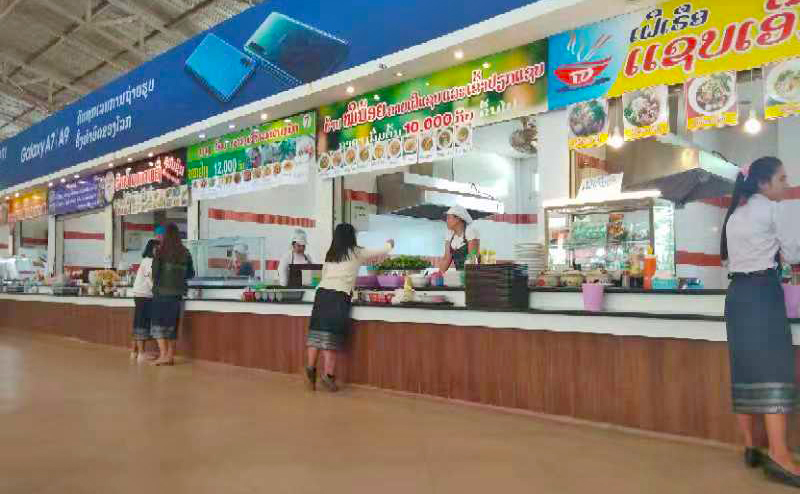 不同的食物由不同的窗口售賣(mài),當(dāng)然打飯的窗口跟中國(guó)“玻璃窗后的阿姨似乎總有點(diǎn)手抖”不同,老撾國(guó)立大學(xué)的食堂窗口更像展會(huì)現(xiàn)場(chǎng)的攤位,制服統(tǒng)一的阿姨笑容滿(mǎn)面地等待你的到來(lái)。