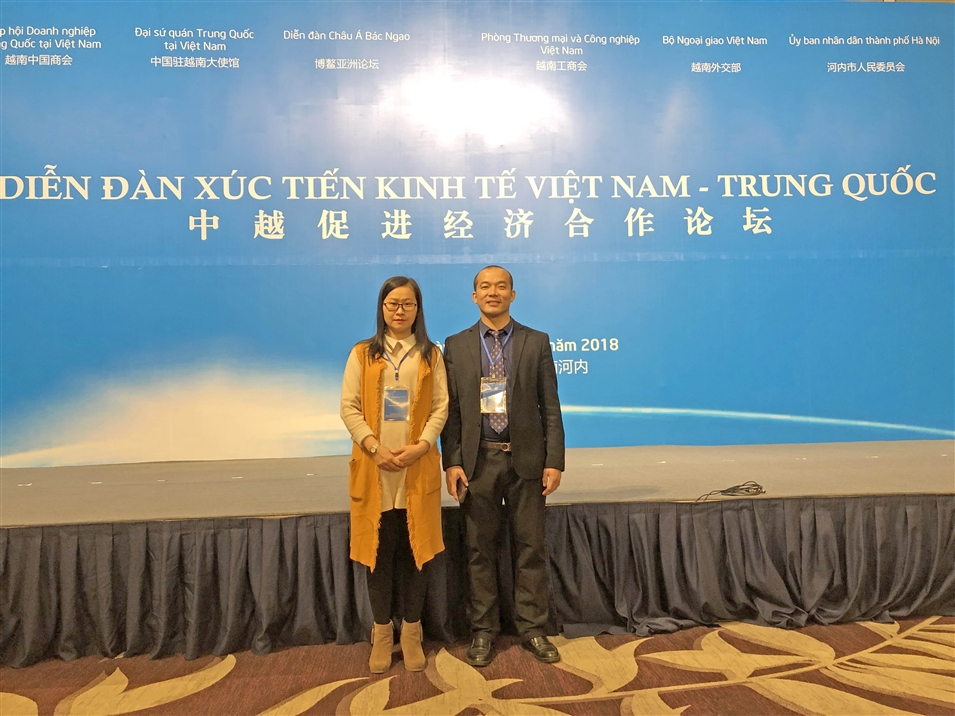 廣西金沛教育執(zhí)行董事粟宥朝(右一)、校長張金雪(左一)參加博鰲亞洲論壇河內會議