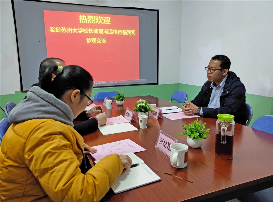 2019年1月7日,老撾蘇州大學(xué)校長助理馮溫格拜訪廣西金沛教育,與廣西金沛教育執(zhí)行董事粟宥朝、校長張金雪進(jìn)行座談。