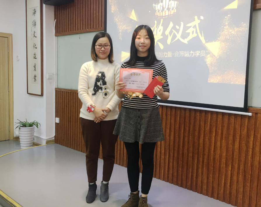 金沛南湖校區(qū)張金雪校長為何佳學員頒發(fā)三等獎