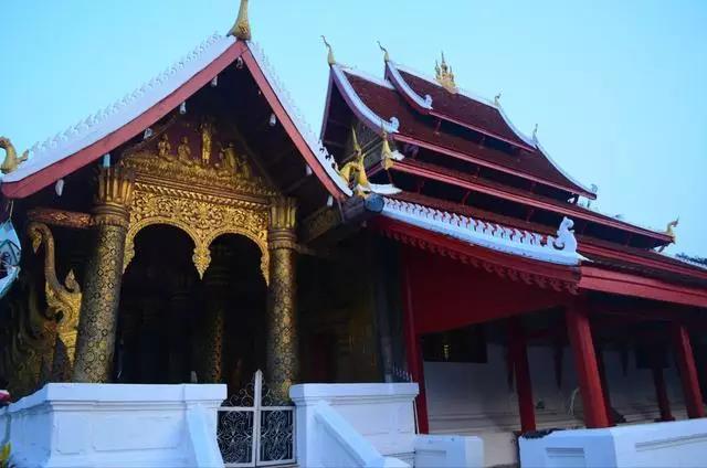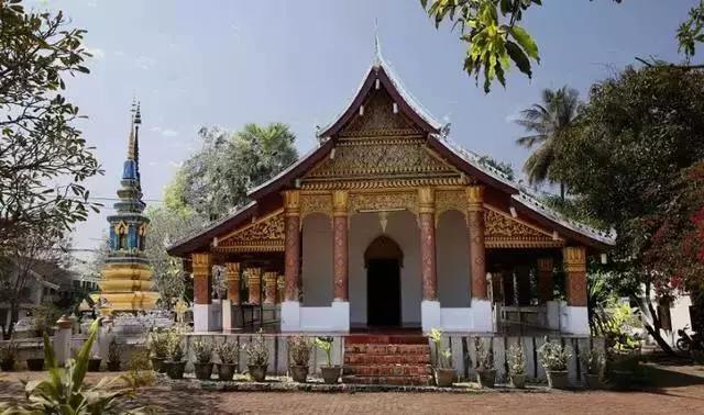 邁佛寺是瑯勃拉邦最著名的寺廟之一,也是這里最大,裝飾最華麗的寺廟。寺廟建于18世紀(jì),座落于王宮博物館附近。寺內(nèi)供奉著一座綠寶石鑄成的佛像。邁佛寺的建筑風(fēng)格比較特別,其五層檐的佛殿遵循了典型的瑯勃拉邦風(fēng)格,但通常建在旁邊的回廊卻建在了山墻的位置,很不尋常。邁佛寺曾經(jīng)毀于入侵者手中,除了主殿外其他建筑大部分是重修的。寺廟的前廊有裝飾華麗的柱子和奢侈的純金浮雕。浮雕敘述了佛祖生平和老撾雨神的故事,也有來自羅摩衍那和鄉(xiāng)村生活的場(chǎng)景。在重要的節(jié)日里,勃拉邦佛將從皇宮博物館里請(qǐng)出放在這里供信徒們參拜。
