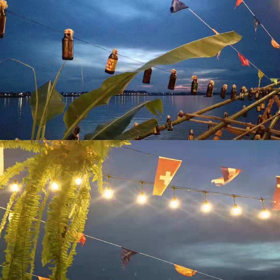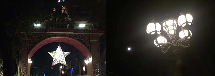 水燈是用象征著力量和財(cái)富的芭蕉葉折疊制成的,有的折成葵花狀,有的折成寶塔狀,折好的水燈上會(huì)插上鮮花和香燭,燃放爆竹之后,人們將香燭點(diǎn)燃,緩緩放入水中。剎那間,映著傾城月色,河面上燈火萬(wàn)點(diǎn),忽遠(yuǎn)忽近,隨波漂蕩,蔚為壯觀。