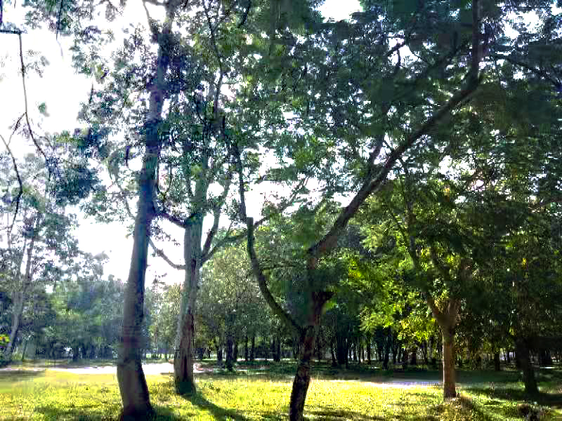 宿舍區(qū)有一片小森林,郁郁蔥蔥,午后或者晚間,可以看到很多學(xué)生漫步其中,特別是夏天,漫步在這大片綠意下,感受習(xí)習(xí)涼風(fēng),整個(gè)人神清氣爽。