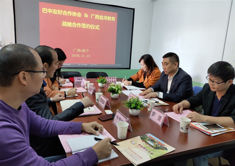 2018年11月13日,巴中友好合作協(xié)會與廣西金沛教育發(fā)展有限公司戰(zhàn)略合作協(xié)議簽約儀式在廣西南寧舉行,廣西金沛教育校長張金雪女士與巴中友好合作協(xié)會副會長江弘共同簽署了戰(zhàn)略合作協(xié)議。