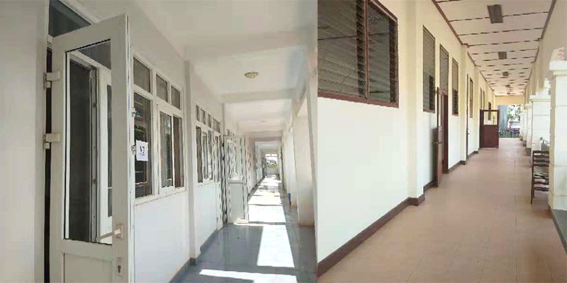 這是我上課的教學樓——語言學院,遵循著“看人先看臉”的原則,我們先看一下它的外在環(huán)境??催^前幾期介紹的小伙伴不難發(fā)現(xiàn),老撾國立大學的教學樓基本都是紅頂白墻,活潑跳躍的顏色彰顯著這所學校的朝氣。